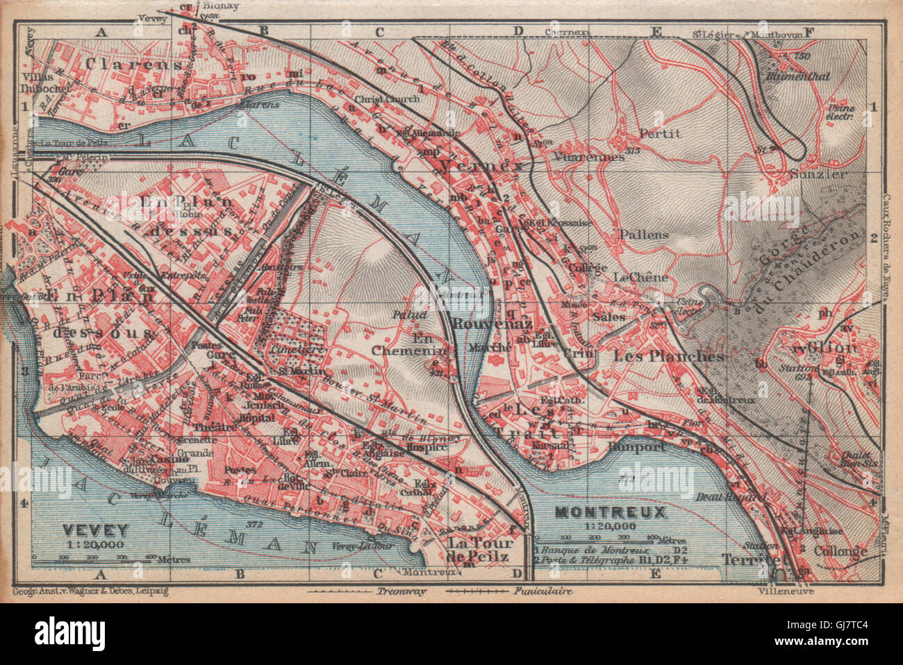 MONTREUX. VEVEY. Clarens. town city plan. Switzerland Suisse