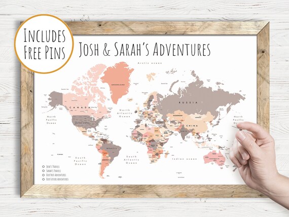 Personalised World Travel Push Pin Map Framed 100 FREE Pins Etsy