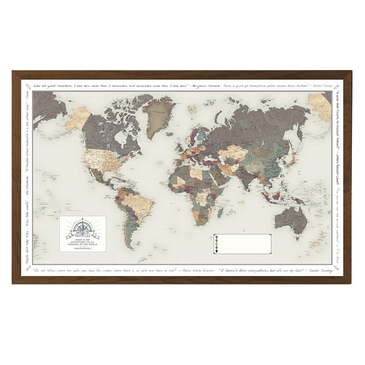 Personalised World Traveller Map framed map of the world with